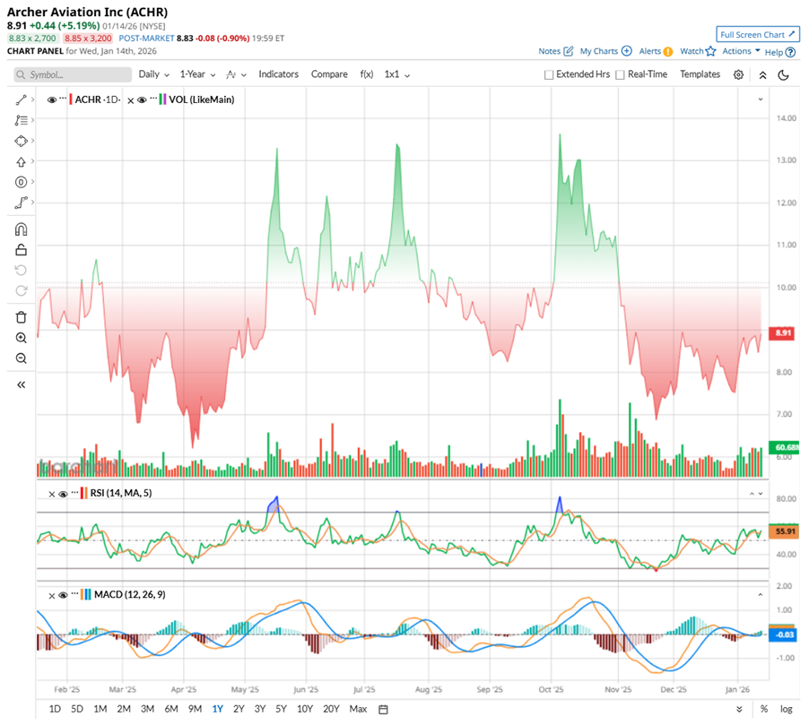 Over the past six months, the stock dipped roughly 26.72%, a reminder that patience is mandatory in pre-revenue aviation plays. ACHR peaked near $14.62 in October before cooling off. A mid-October dip of about 9% followed news of its €18 million patent acquisition from Lilium, as investors balanced long-term strategic value against near-term cash burn and profitability timelines.