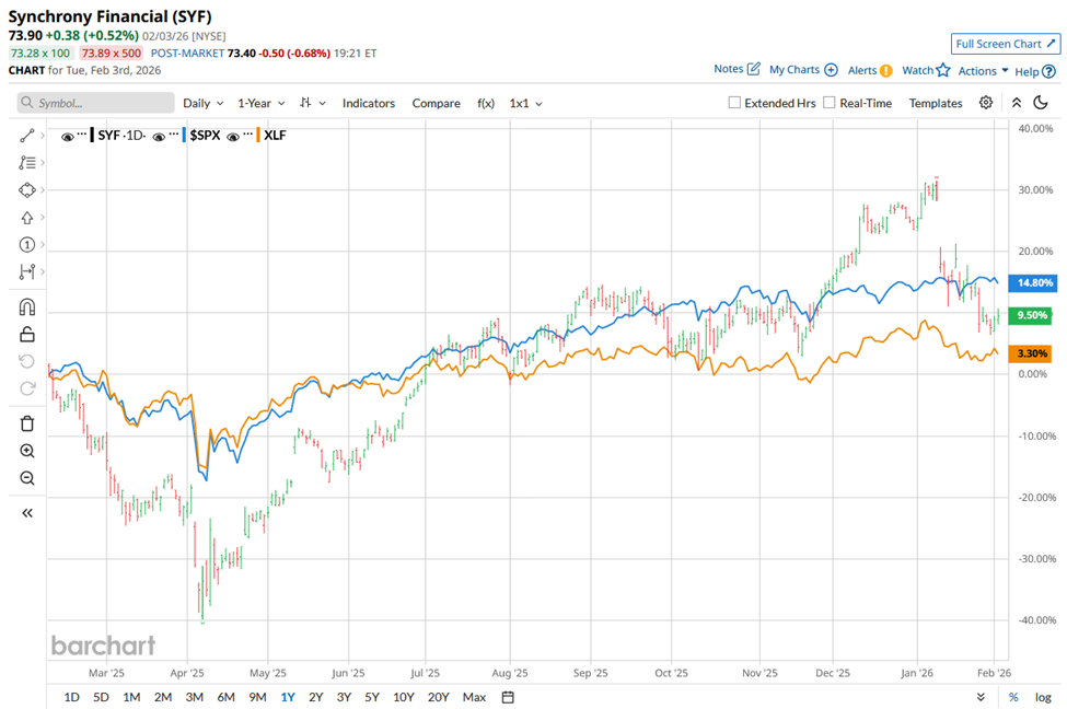 With a market cap. of $26.6 billion, Synchrony Financial (SYF) provides a wide range of credit products, including credit cards, installment loans, and commercial financing, along with consumer banking and deposit products. It partners with major retailers, healthcare providers, and brands across industries such as retail, health and wellness, home, auto, and digital services.