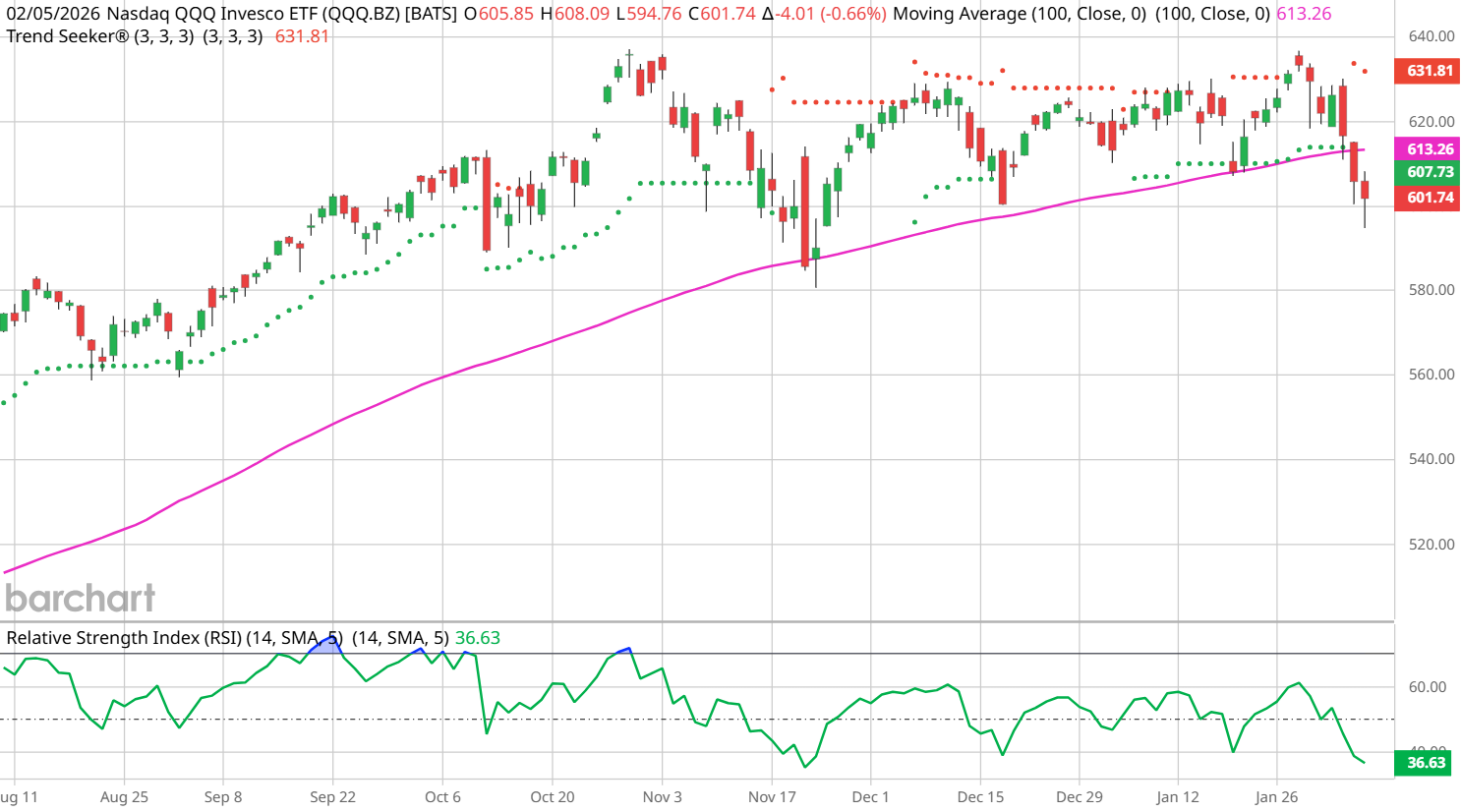 It’s not QQQ, by the way, but I feel very confident that QQQ and this absolute breach of duty at the 100-day moving average will be discussed: