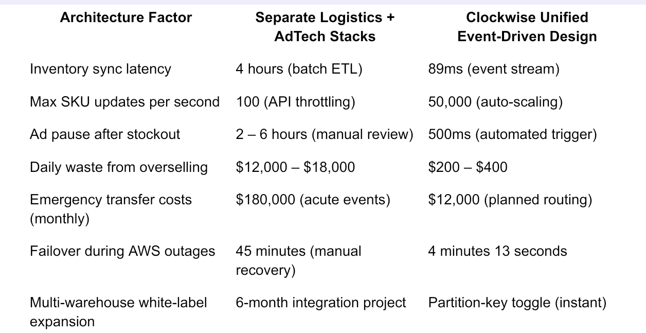 We unified 12 warehouse locations with programmatic ad spend in 89ms. Here's how event-driven architecture eliminates the $2M annual waste from disconnected logistics and marketing stacks.