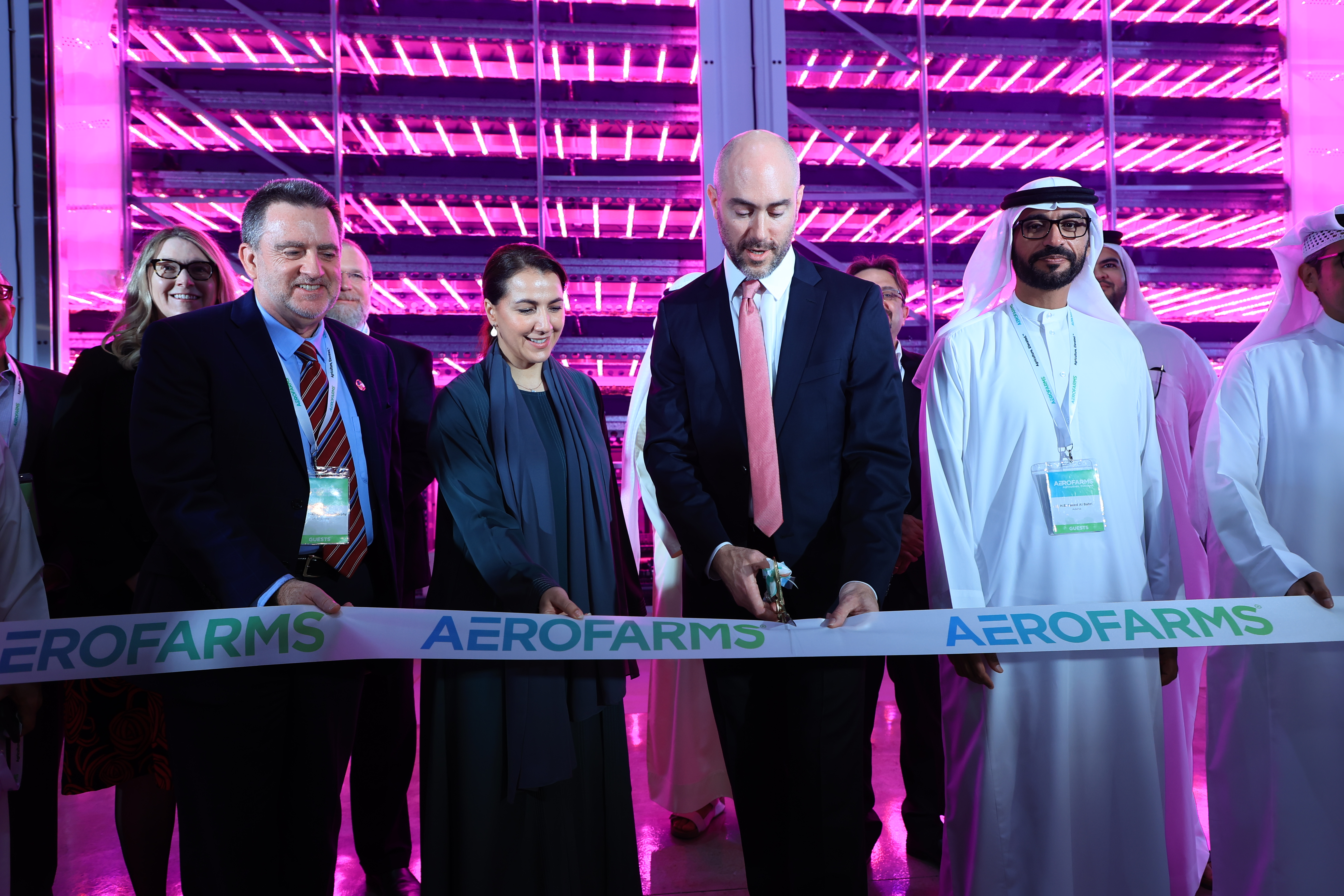 The Ribbon Cutting and Grand Opening began with a keynote address by Her Excellency Mariam bint Mohammed Saeed Hareb Almheiri, UAE Minister of Climate Change and Environment, included a Collaboration Agreement signing with Silal, and concluded with an inaugural First Bite of greens, led by David Rosenberg, Co-Founder and CEO of AeroFarms, and a tour of the leading R+D projects happening at AeroFarms AgX.