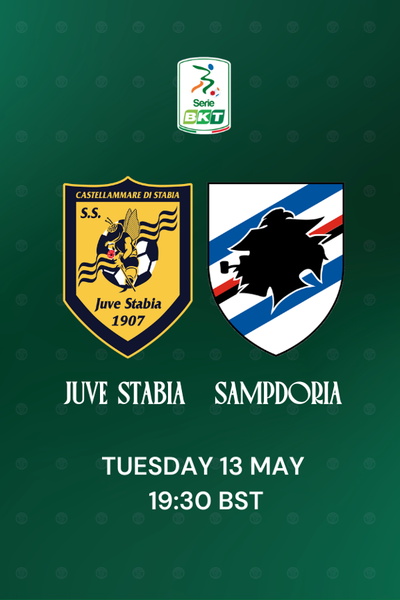- Tuesday May 13: Juve Stabia vs. Sampdoria (home) – 02:30pm Eastern (19:30 BST) Live on Destination Calcio TV https://tv.destinationcalcio.com/liveEventDetail.html id=D80A768E6D4149E29DA63B928E6C3D35&menuId=538.