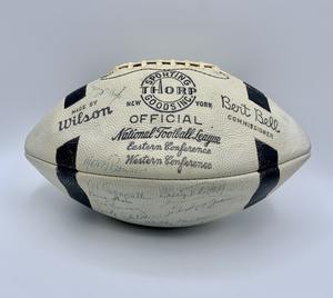 Another example is a white leather Thorp Sporting Goods Wilson NFL football that is dated to 1954. Within the storied history of the NFL, these white leather footballs were utilized for night games until 1956. Footballs of this nature are quite rare and do not become available often.