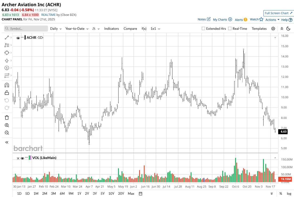 On the date of publication, Yiannis Zourmpanos had a position in: ACHR . All information and data in this article is solely for informational purposes. For more information please view the Barchart Disclosure Policy here.