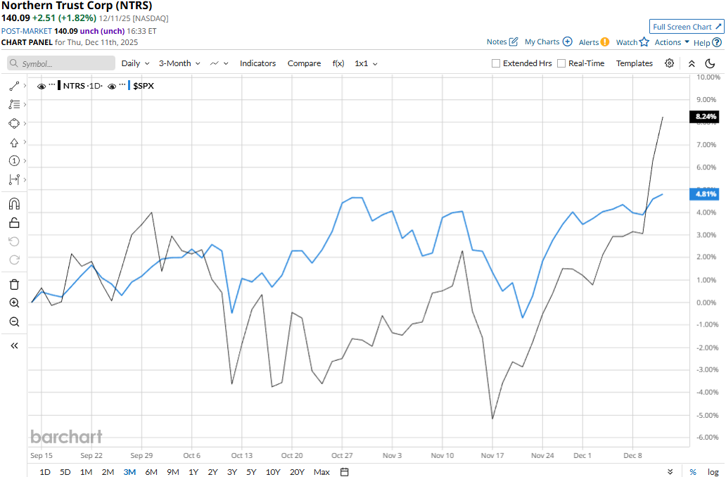 NTRS stock touched its all-time high of $140.18 in yesterday’s trading session before slightly pulling back. Meanwhile, NTRS stock prices have gained 8.2% over the past three months, notably outpacing the S&P 500 Index’s ($SPX) 4.8% uptick during the same time frame.