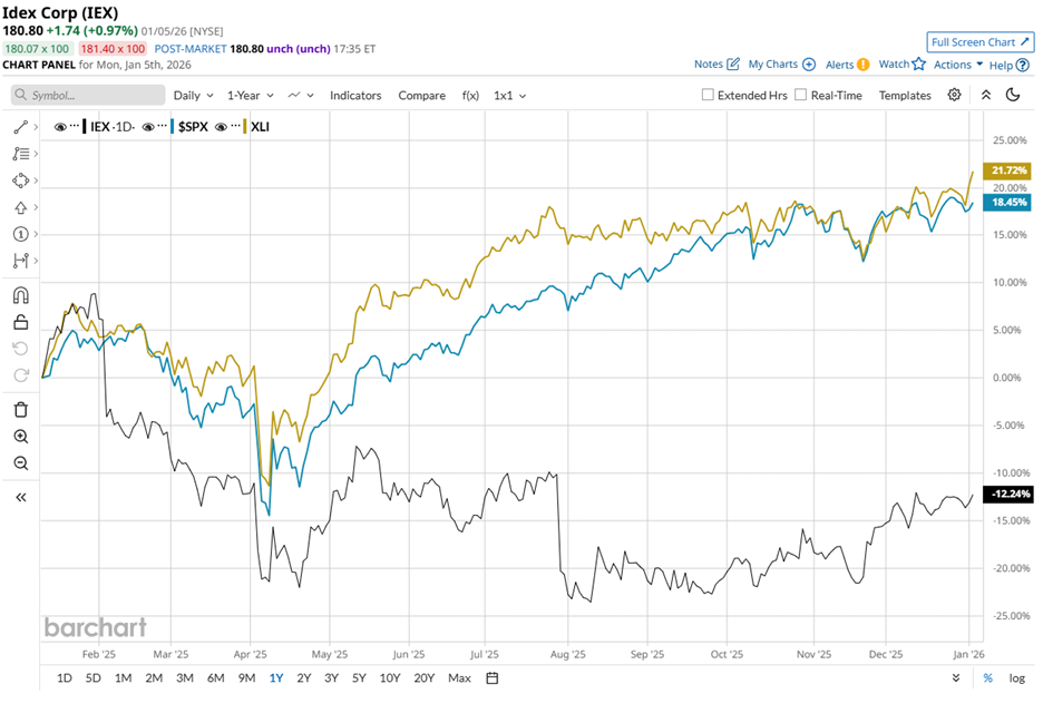 Share-price performance has lagged broader benchmarks. In the past 52 weeks, IEX stock declined 12.7%, although it remains up 1.6% on a year-to-date (YTD) basis. By contrast, the S&P 500 Index ($SPX) advanced 16.2% over the same period, while delivering only modest gains so far this year.