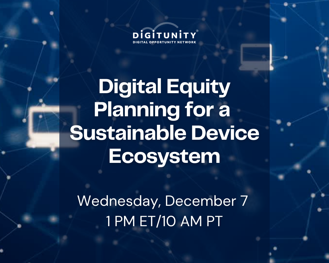 Digitunity's guidance, entitled "Methodology for a Sustainable Device Ecosystem," describes the conditions communities must have in place to ensure marginalized residents have the ability to obtain a computer. They will release and discuss this guidance in a webinar at 1 p.m. on Wednesday, Dec. 7. You can register for the webinar here.