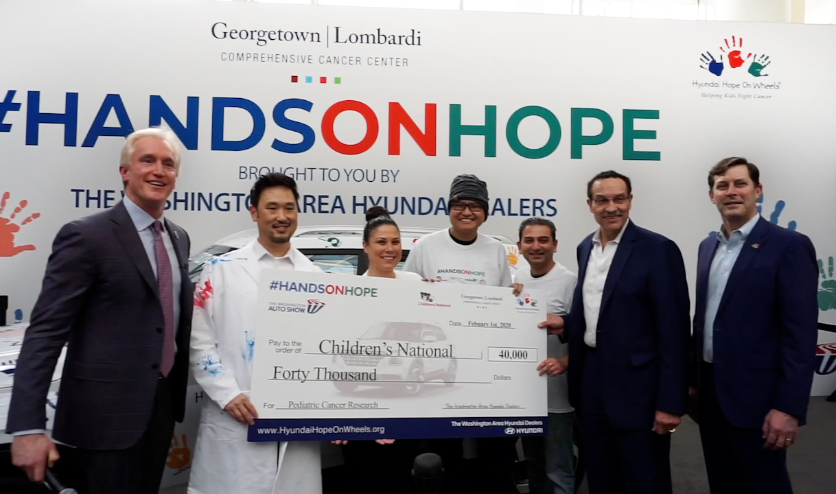 The Washington Area Hyundai Dealers, The Washington, D.C. Auto Show, Georgetown University’s Lombardi Comprehensive Cancer Center, and Children’s National Hospital come together annually to fight pediatric cancer through the Hyundai Hands On Hope Contest at The Washington, D.C. Auto Show. In 2019, the longstanding “Hands On” contest at The Washington, D.C. Auto Show took a turn decidedly for the better – the contest would still award a winner a brand new Hyundai, but more importantly, as part of the contest, The Washington Area Hyundai Dealers would provide pediatric cancer research grants to Georgetown Lombardi and Children’s National. Drawing inspiration from Hyundai Hope on Wheels, the new contest was named “Hyundai Hands On Hope.”