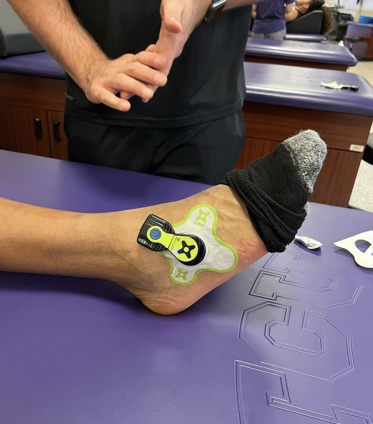 A representative from the ZetrOZ Systems sports medicine team visited the organization to discuss the sam® device. One account involved a wide receiver at the college who suffered from plantar fasciitis. His trainer put him on a treatment using the sam®x1 wireless unit, allowing him to attend team lunches and class while undergoing the full hour of treatment time.