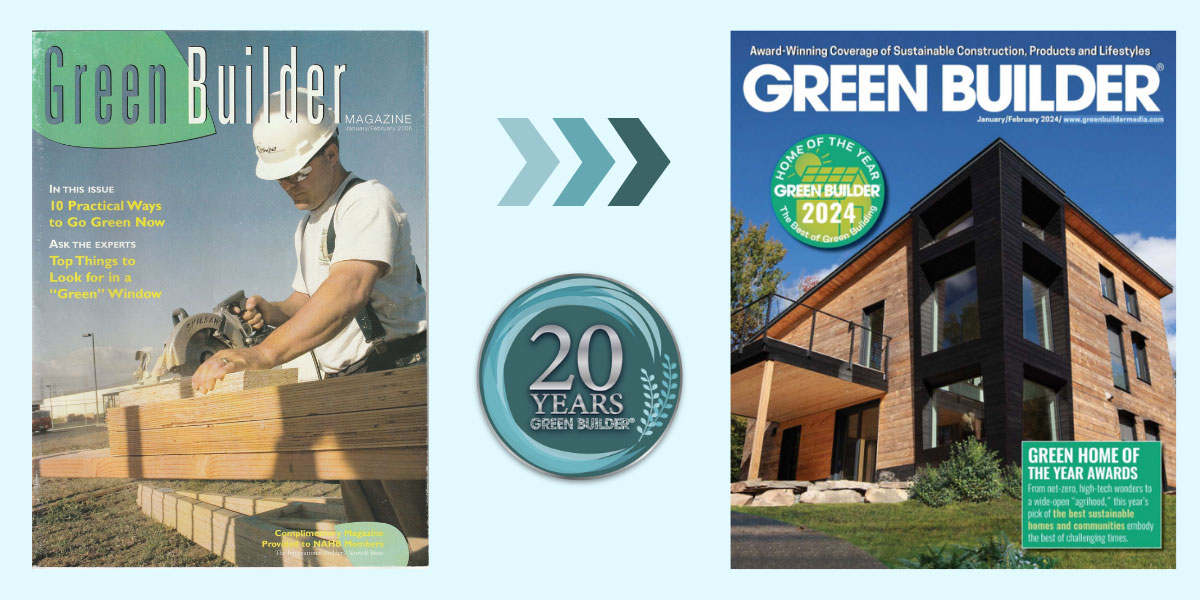“When I reflect on the past 20 years since Green Builder Media’s inception, I can hardly believe the amount of change that has taken place,” says Green Builder Media’s CEO Sara Gutterman. “We started by launching Green Builder magazine. Back then, all we could really talk about was energy efficiency, building science, and cost savings from energy efficiency and building science if we wanted the industry to listen.”