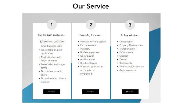 Lenders also fund businesses across transportation, retail, e-commerce, medical, dental, food service, wholesalers, distributors, and accounting. The company works with businesses that have been denied funding. Applicants can begin their pre-qualification process by downloading a pre-qualification checklist and completing a short questionnaire online.